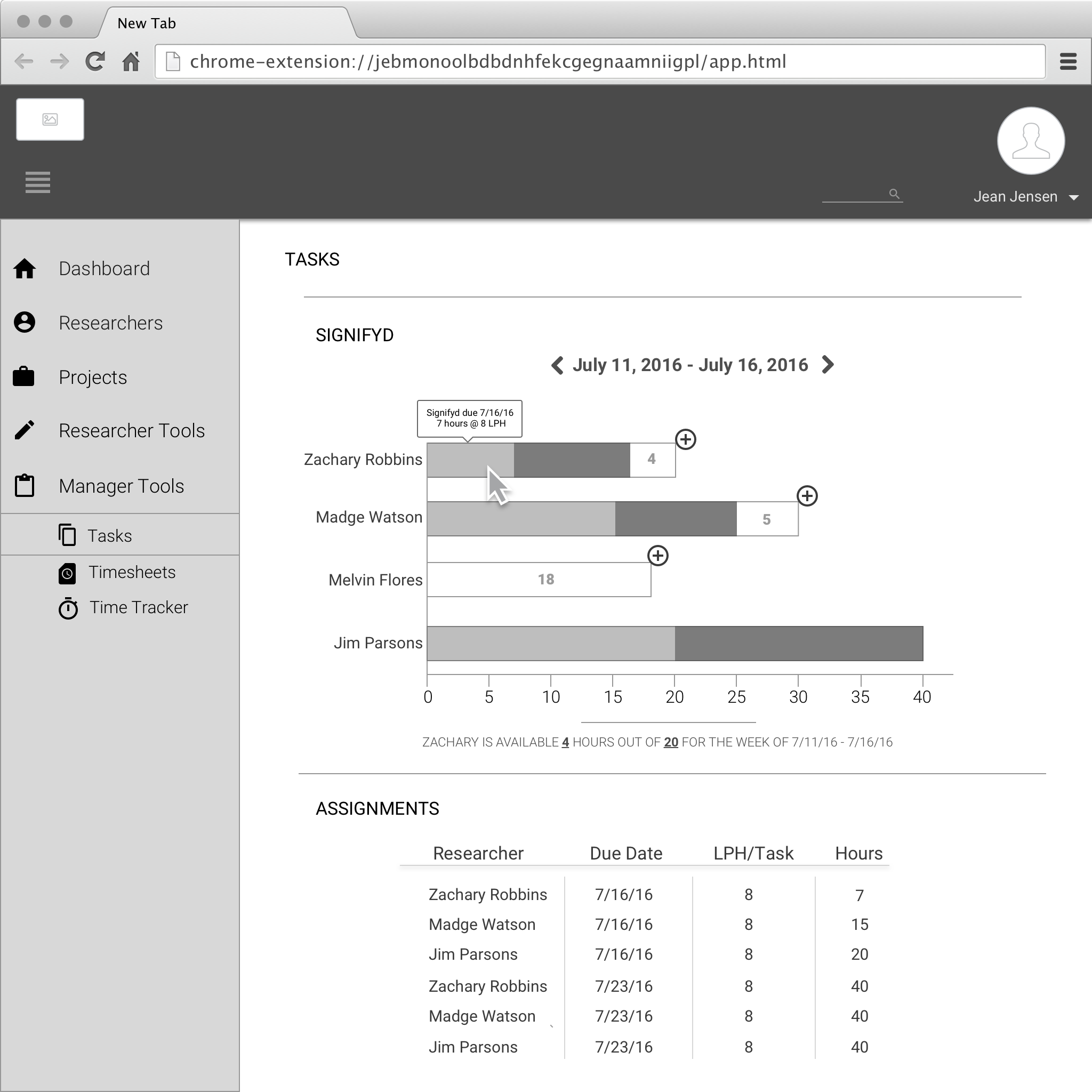 Design internal tools to account for missing data on the researchers, such as task scheduling, project progress, and payment timesheets.